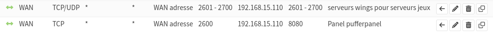 Une règle pour le panel, le reste pour les serveurs ( oui c'est stupide d'avoir séparé, mais j'ai juste modifié les IP par rapport à ptérodactyl )