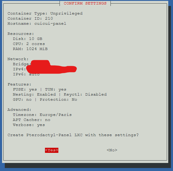 - J'ai mis non à : GPU passtrought ( si j'ai besoin de la cg pour autre chose ) et au APT cache-NG, car j'ai pas de services qui gère ça, c'est chacun pour soit.
