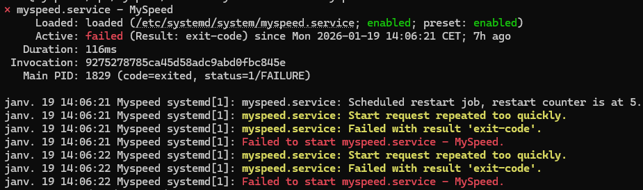 On redémarre le service et on a une meilleure tête au niveau des logs :