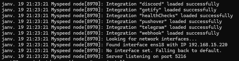 Il lui manque des dépendances à nodeJS. Donc on fait un npm install dans le dossier /opt/myspeed/server