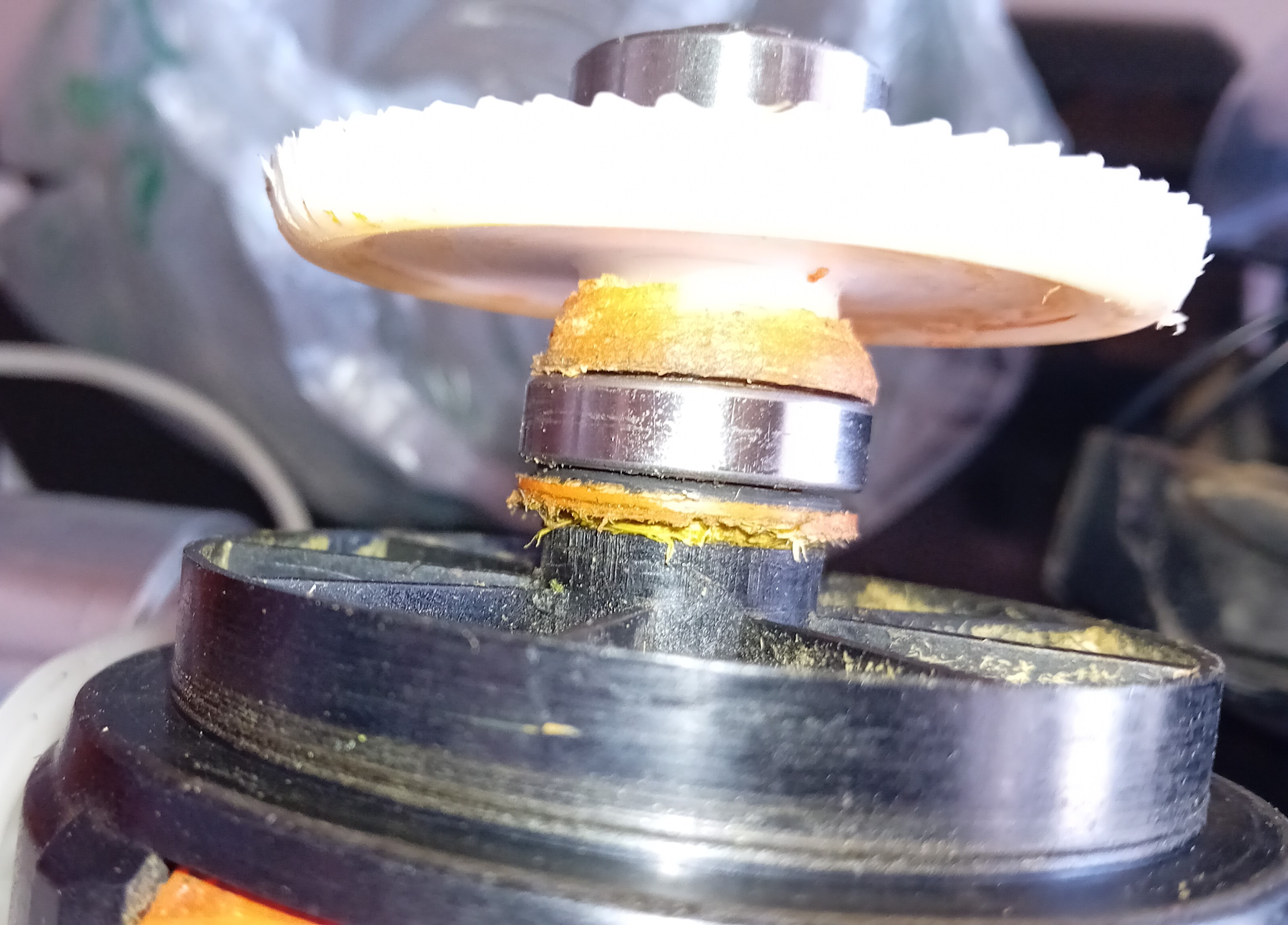 Inquiétant les copeaux de plastique au niveau de la courroie...