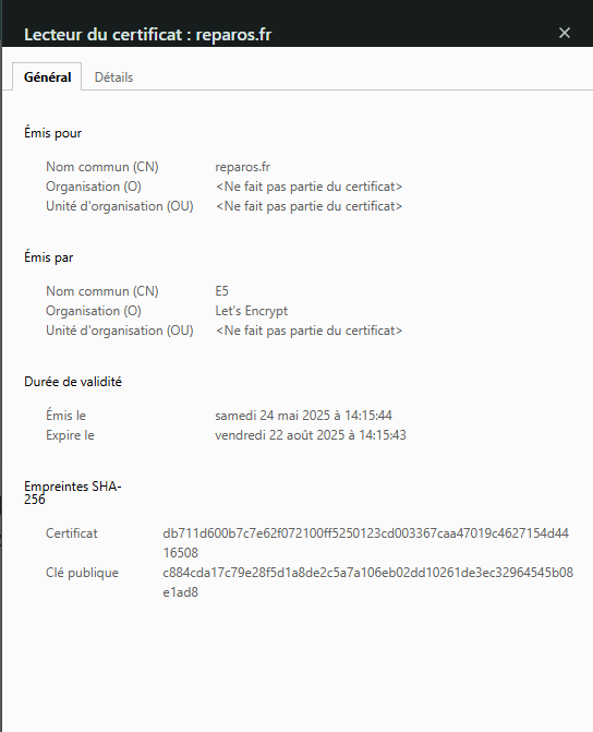 Le site est en HTTPS grâce à un certificat valide.