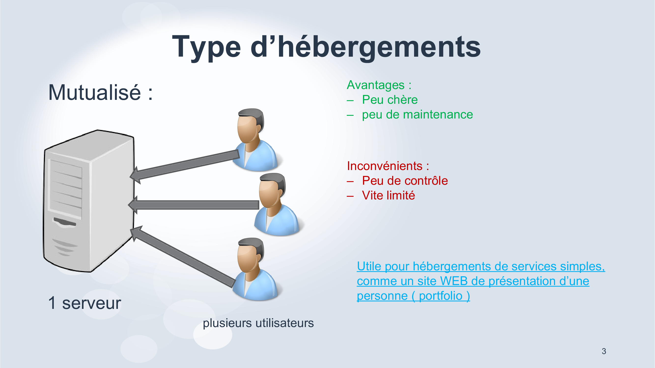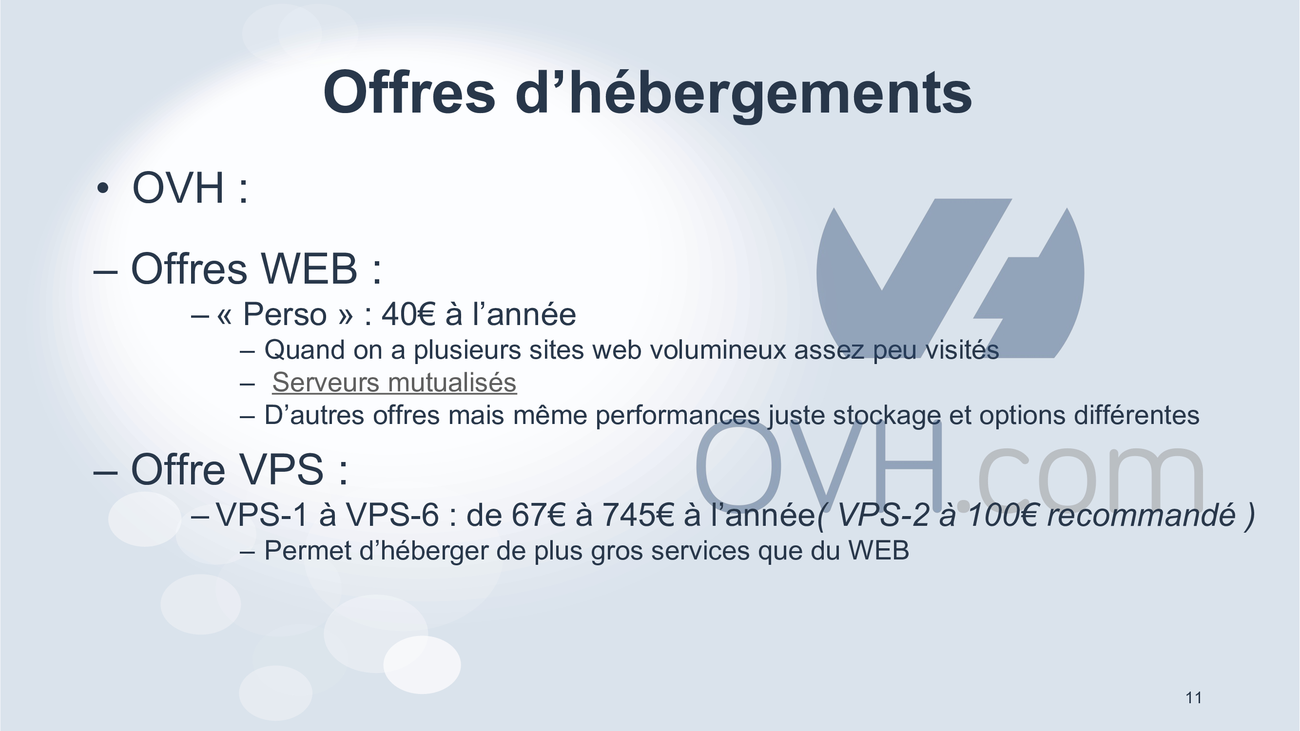En cette deuxième semaine de stage, nous attaquons la première documentation. Celle-ci est une demande du maitre de stage, qui est de faire une présentation des hébergements disponibles sur le marché, ainsi que de la manière d'héberger.