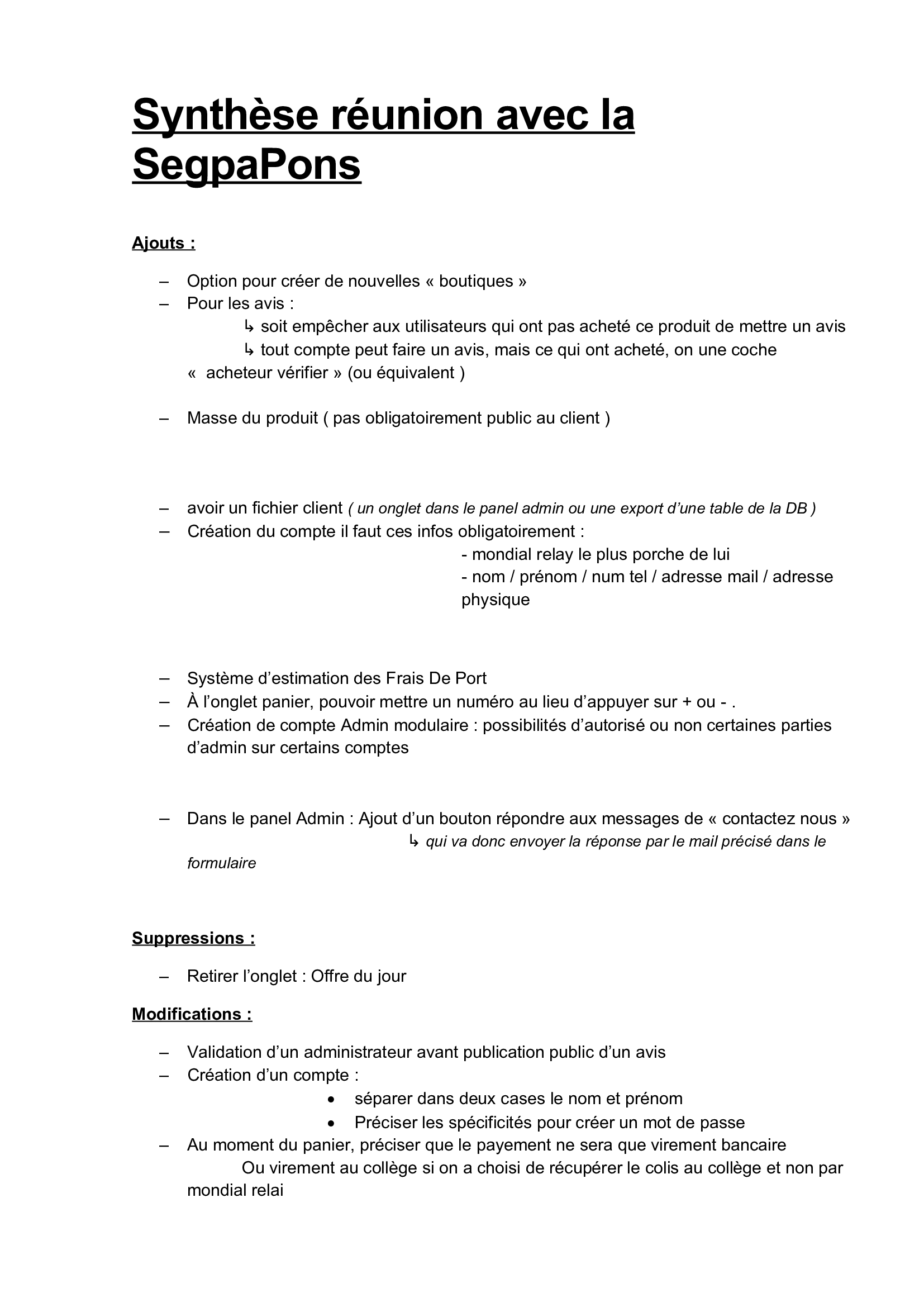 En montrant une maquette du site, hébergé sur un de nos serveurs de stage, le client a pu nous dire ce qu'il lui convenait, ce qu'il fallait modifier et ce qu'il fallait ajouter ou supprimer.